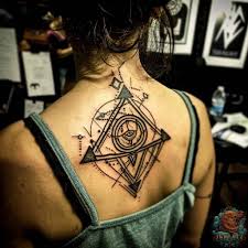 Abstract geometric patterns can make tattoos look modern and unique. They can help older women over 60 show their individuality through body art.